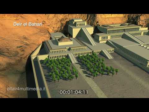 The site of Deir el-Bahari, traditional worship venue of the goddess Hathor, is close to the Thebes mountain of Upper Egypt, on the western bank of the Nile, in front of Karnak. The first sovereign who made use of the natural rocky amphitheatre created by the high and fascinating Thebes mountain was Mentuhotep II (XI dynasty) who chose it as the site for his funerary temple. During the New Kingdom, the queen Hatshepsut (XVIII dynasty) built his funerary temple there, reproducing the terrace structure of the Mentuhotep II temple, with further additions. Later on, Thutmosis III built a temple between the two funerary complexes dedicated to the god Amun, with a very similar plan to that of the Hatshepsut monument. During the Ptolemaic age, the queen’s temple was changed and expanded. Finally, the Copts built a monastery inside it, called the “northern monastery”, from which the Arab place name “Deir el-Bahari” derived.