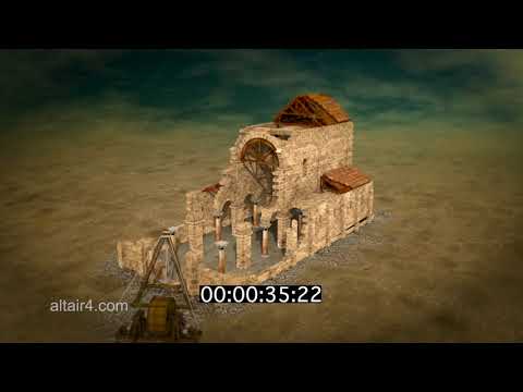 Our reconstruction shows a virtual building site for a Romanesque church, including the typical elements of this style.